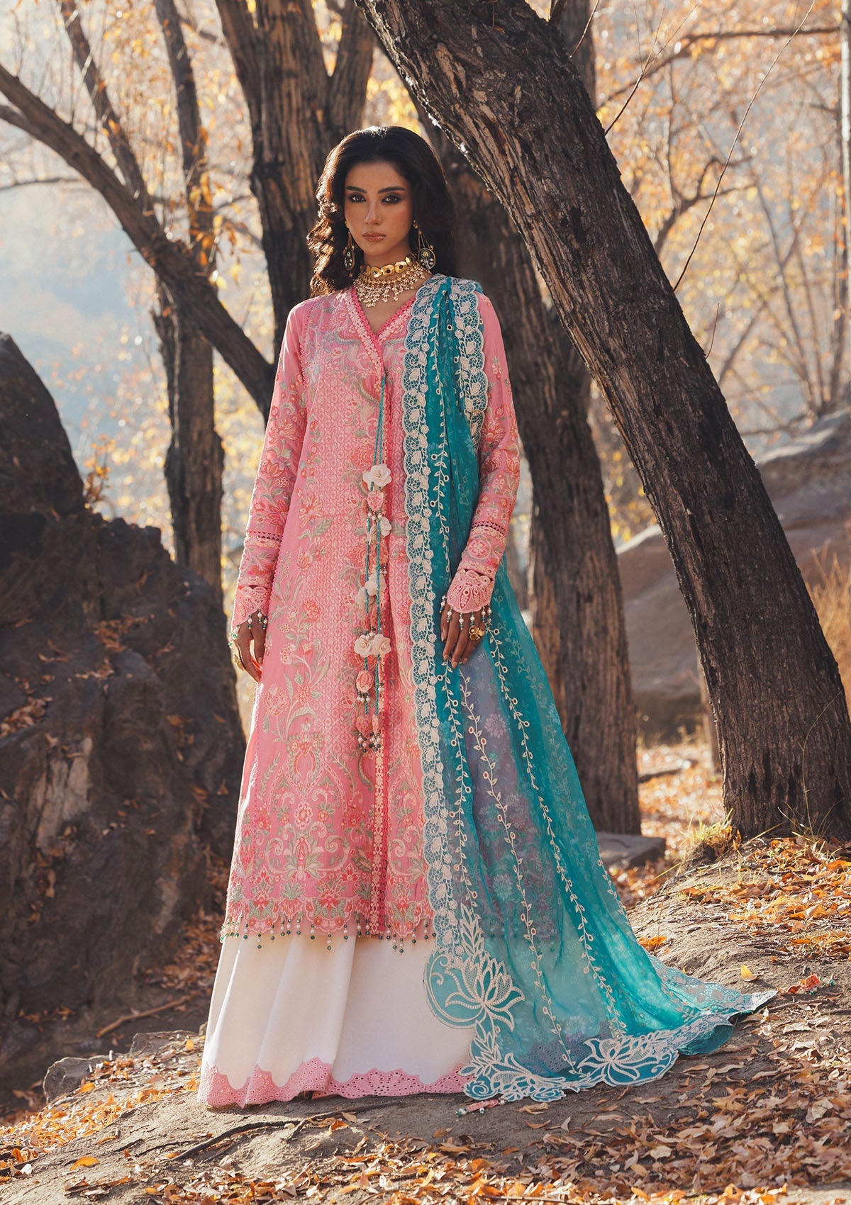 • Printed + Embroidered Chiffon Dupatta