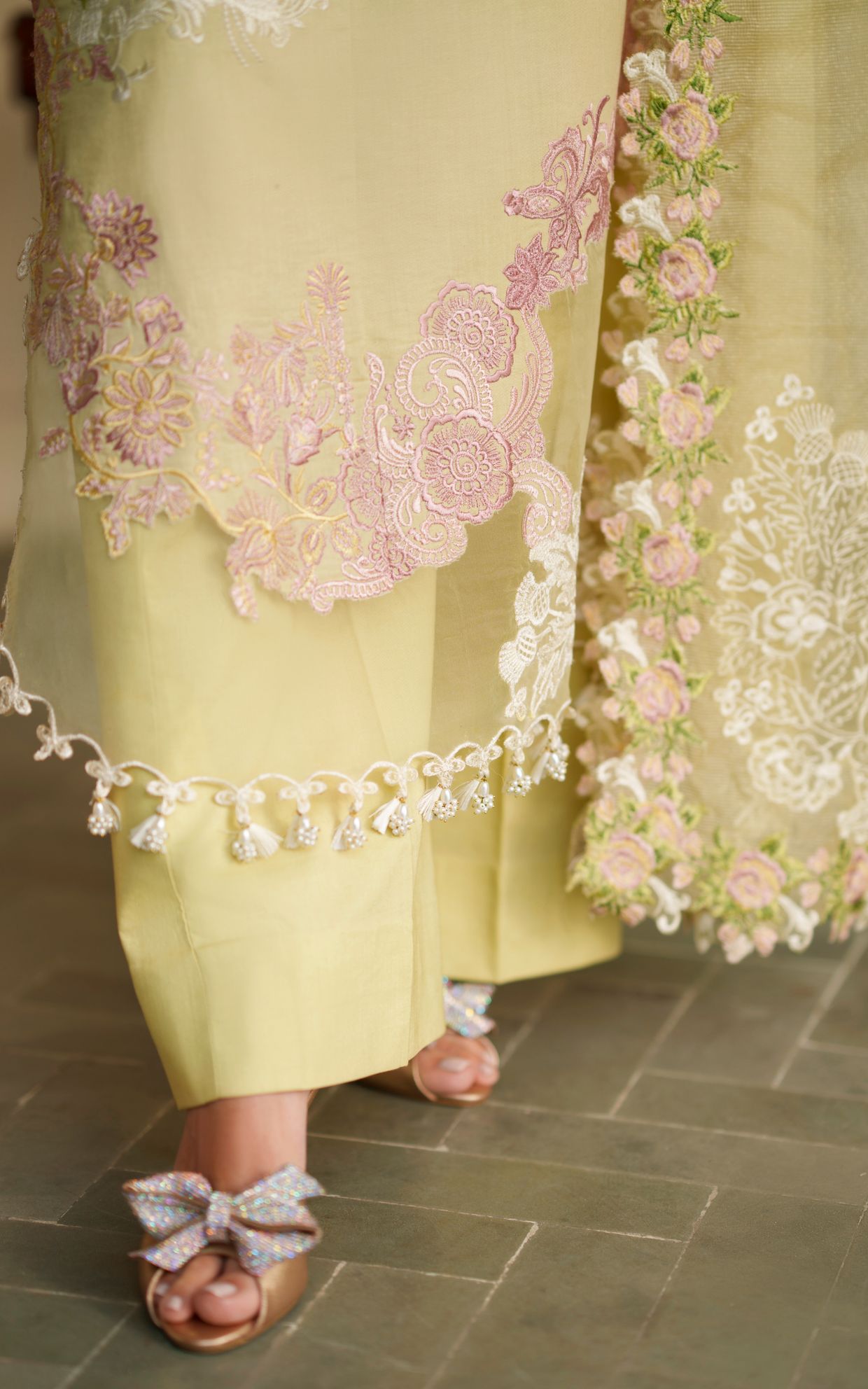 - Embroidered patti for sleeves on lawn.