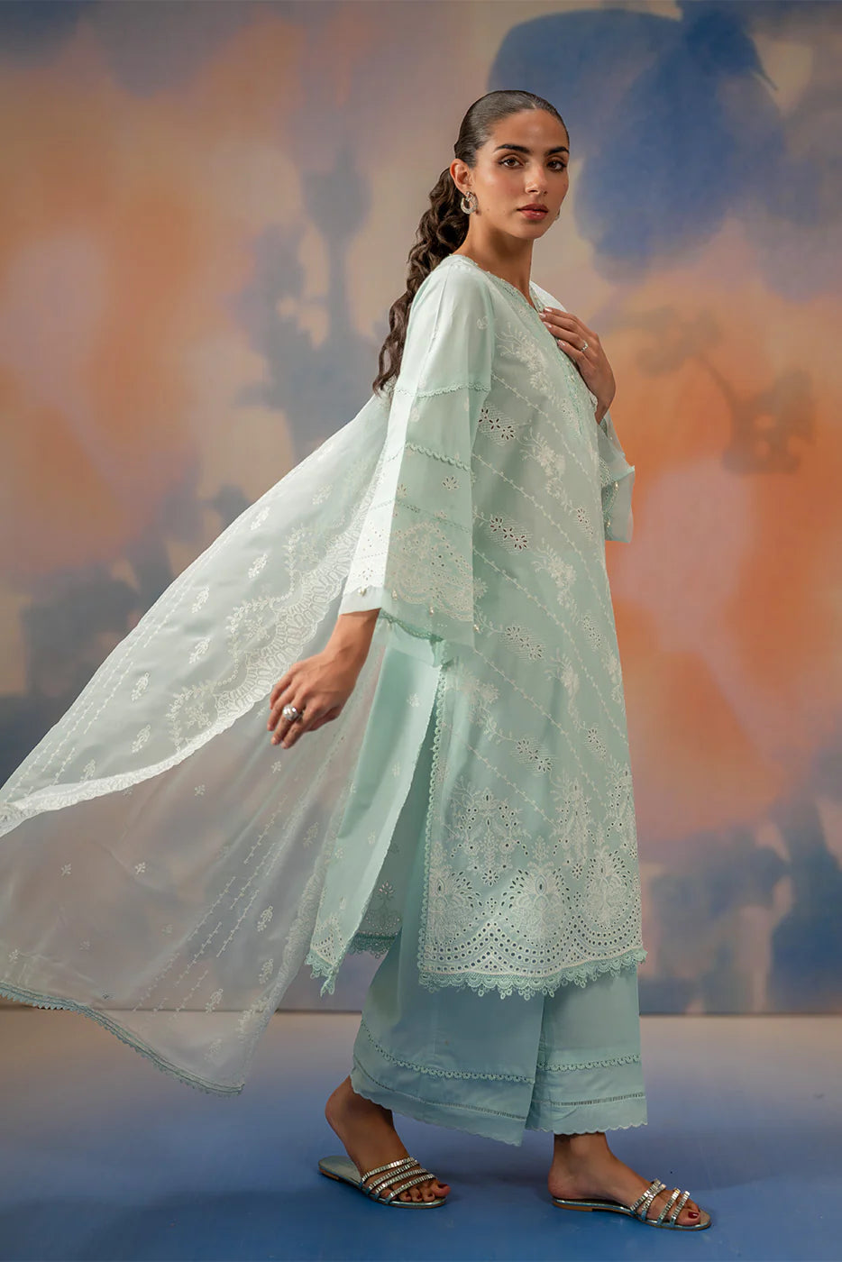 3 PIECE EMBROIDERED CHIKANKARI SUIT WITH BAMBER DUPATTA-AZURE MIST (UNSTITCHED)