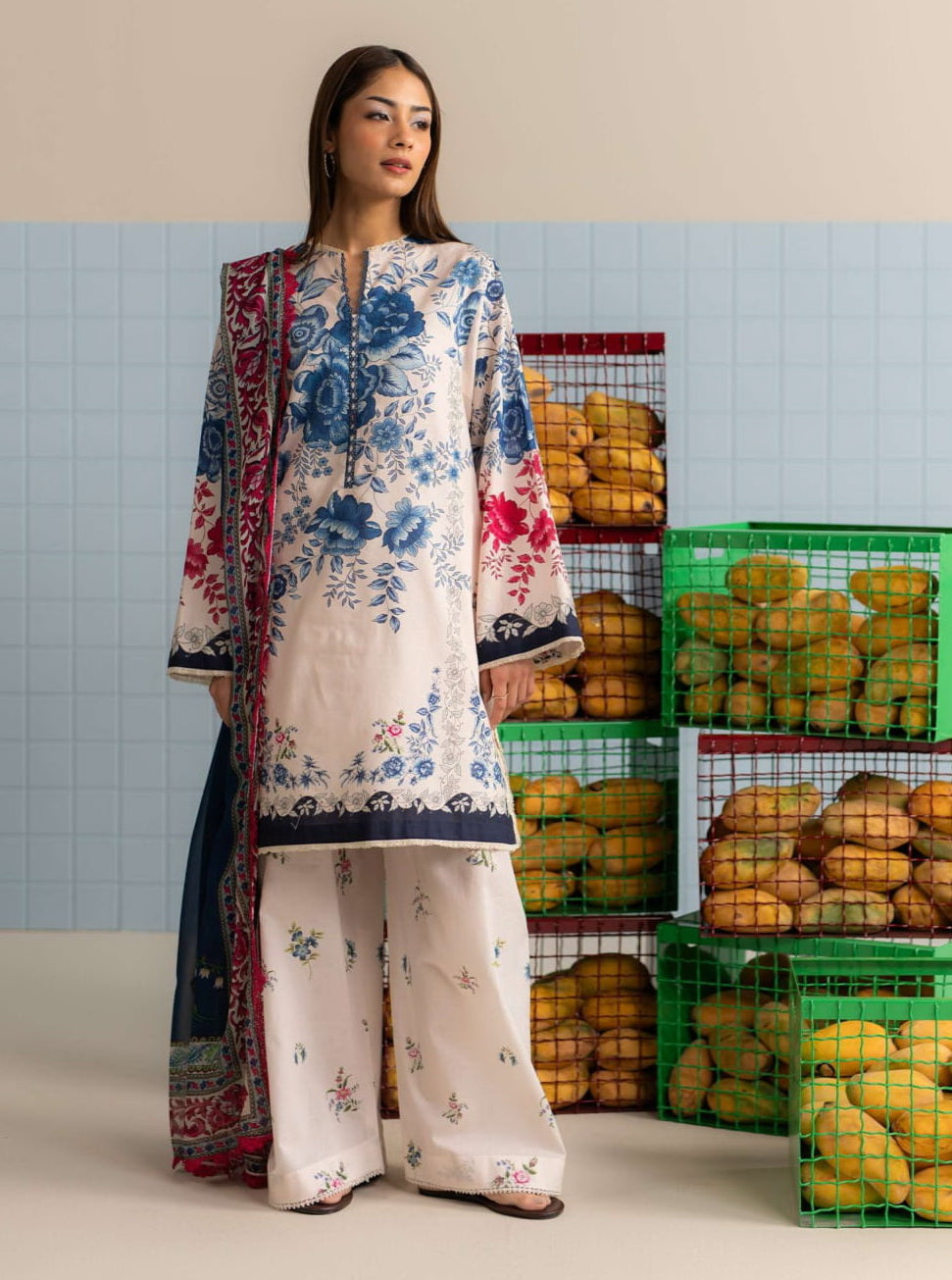 - A botanical blue print shirt on an off-white base with all-over floral printed pants, paired with a light chiffon dupatta-fresh, detailed, and full of ease.