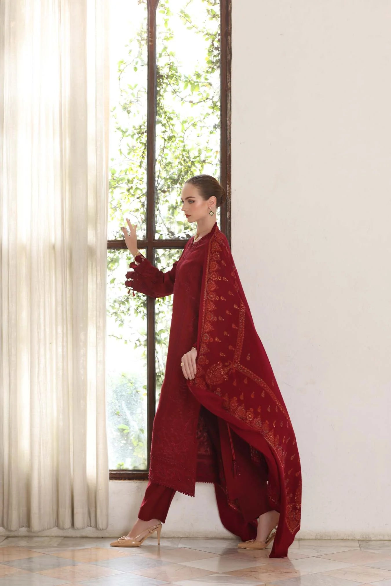 Shawl Fabric: Pashmina- Luxuriously soft and lightweight, this pure Pashmina shawl offers timeless warmth and elegance.