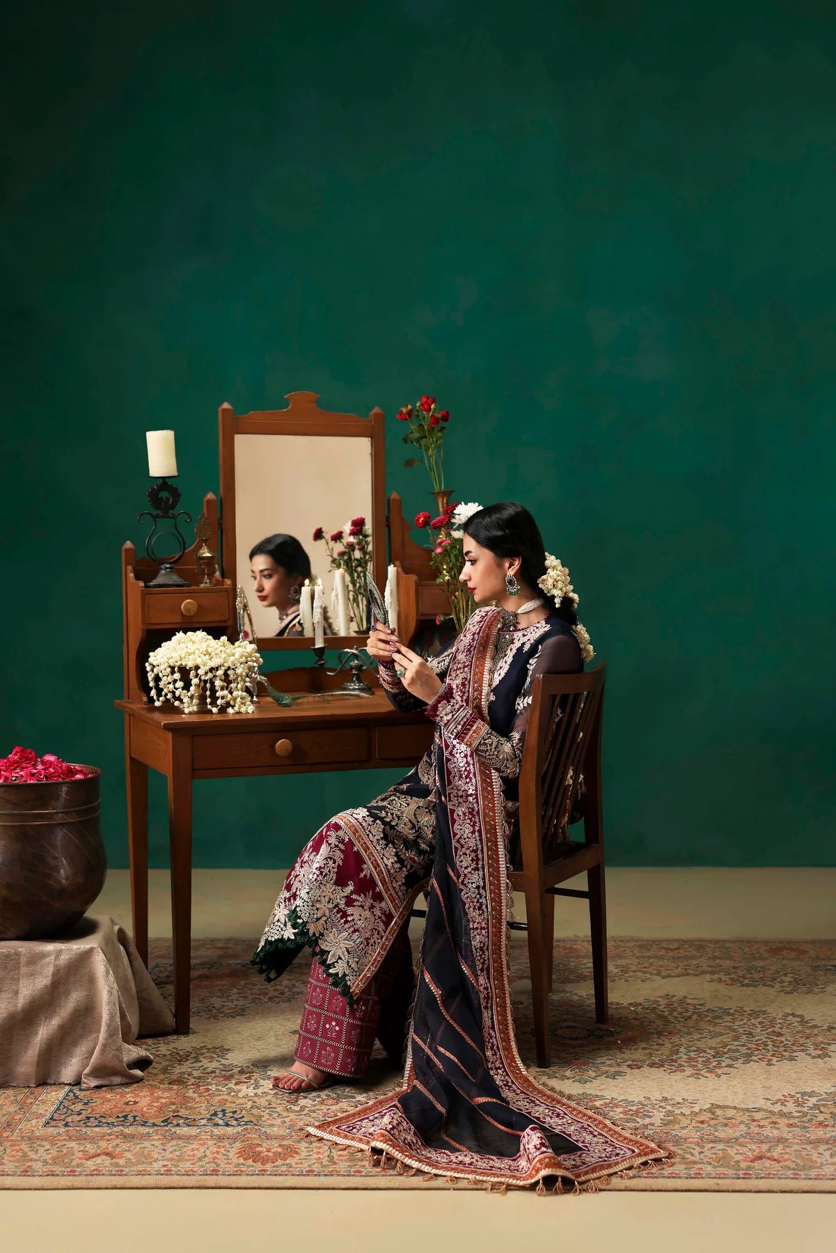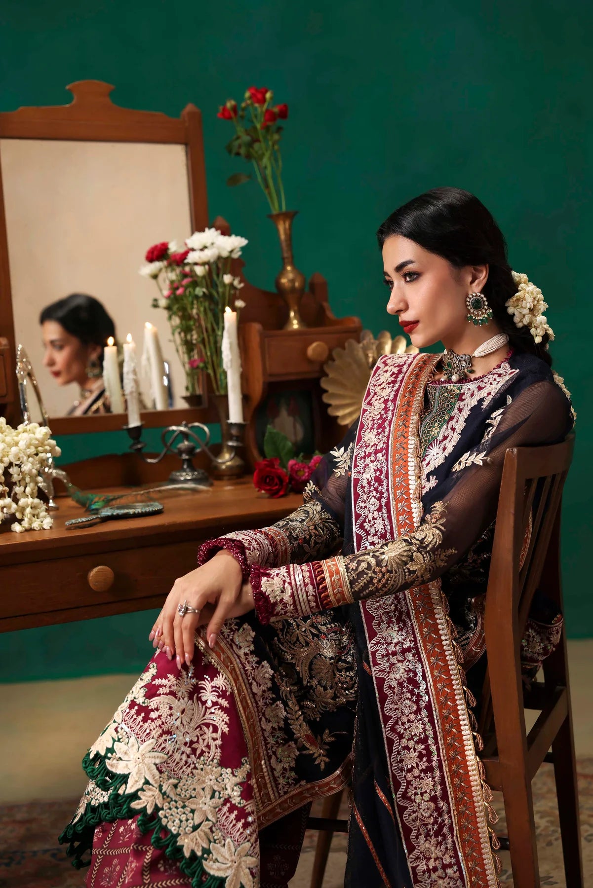 11. EMBROIDERED DUPATTA ON DYED NAVY BLUE NET FABRIC 2.5-M 01