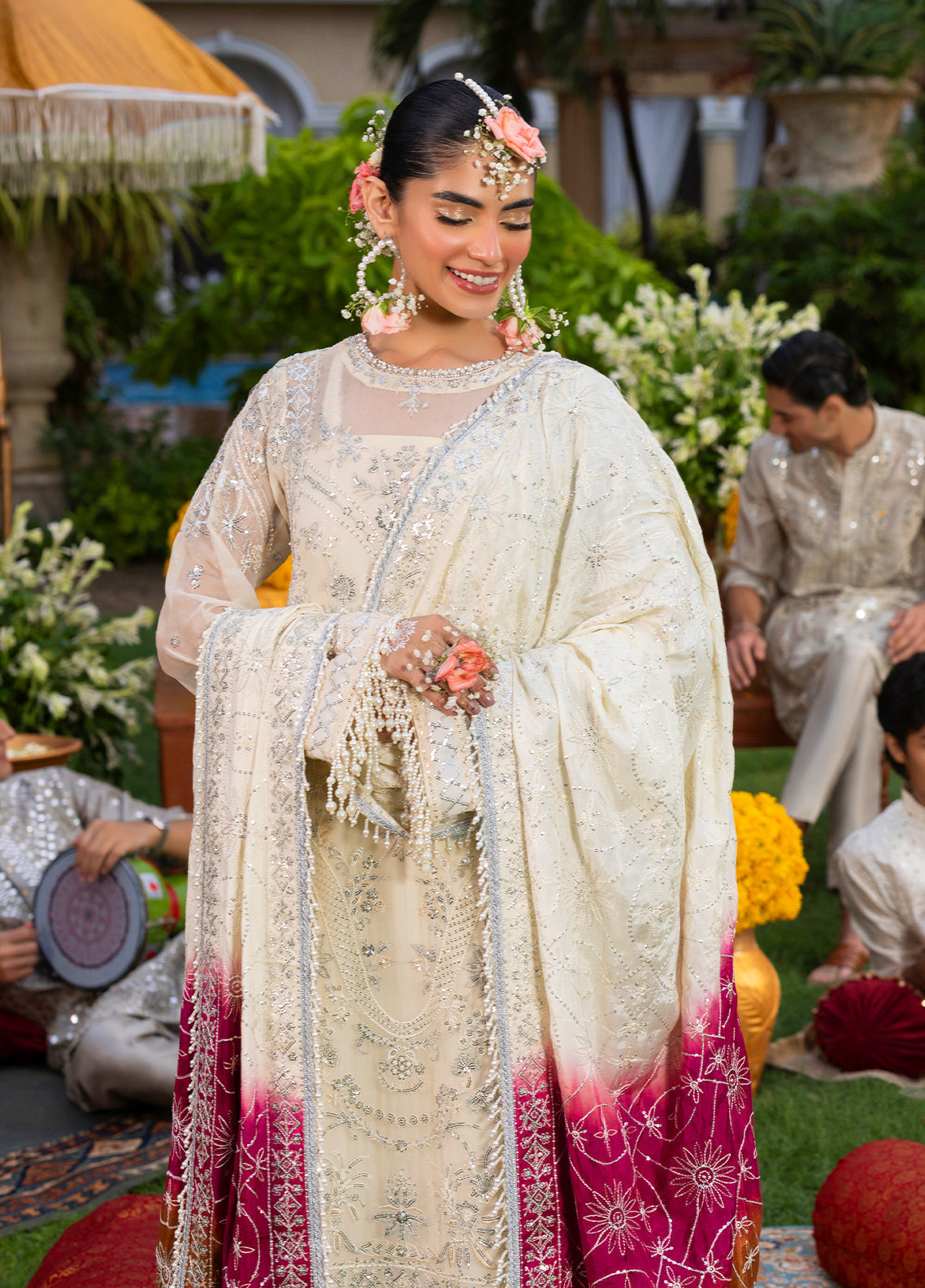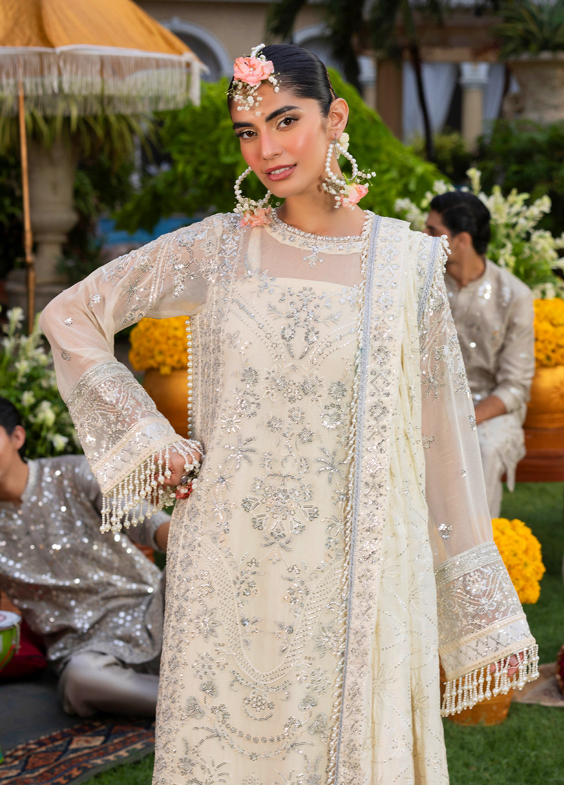 Sequins Embroidered Sleeves Border on Organza