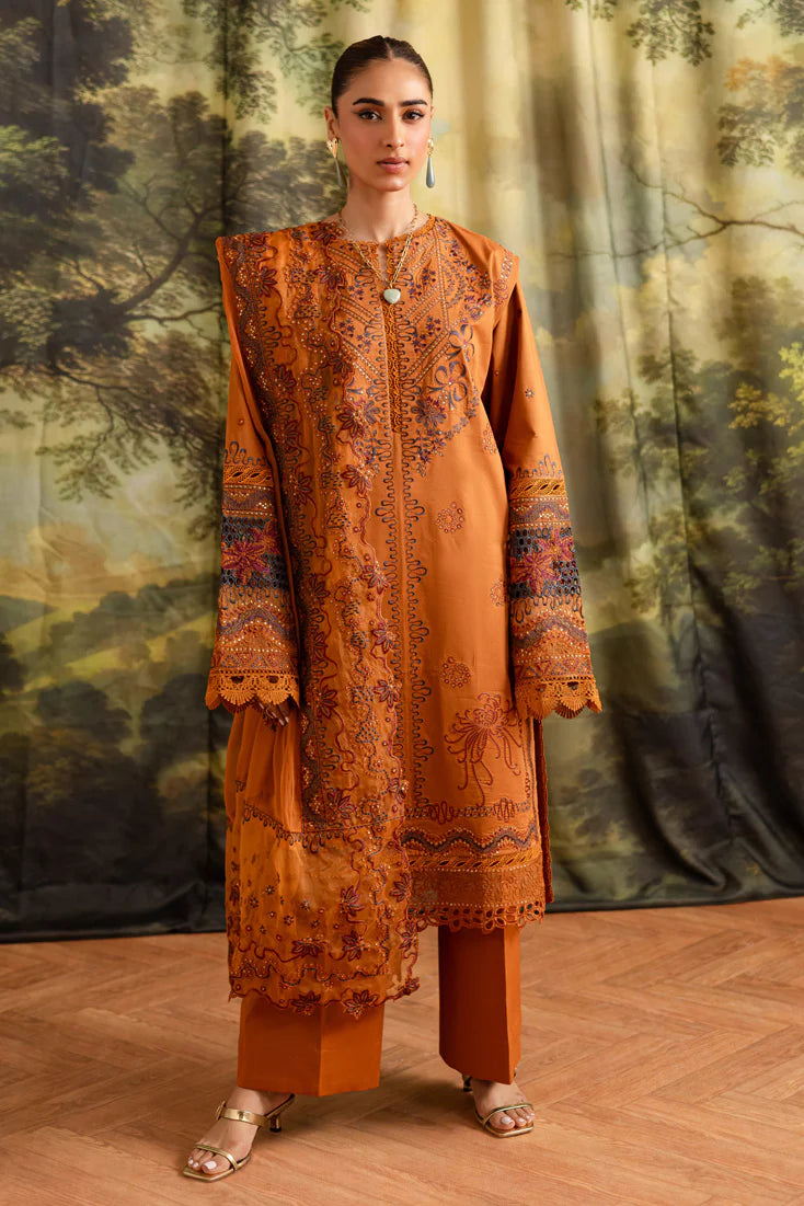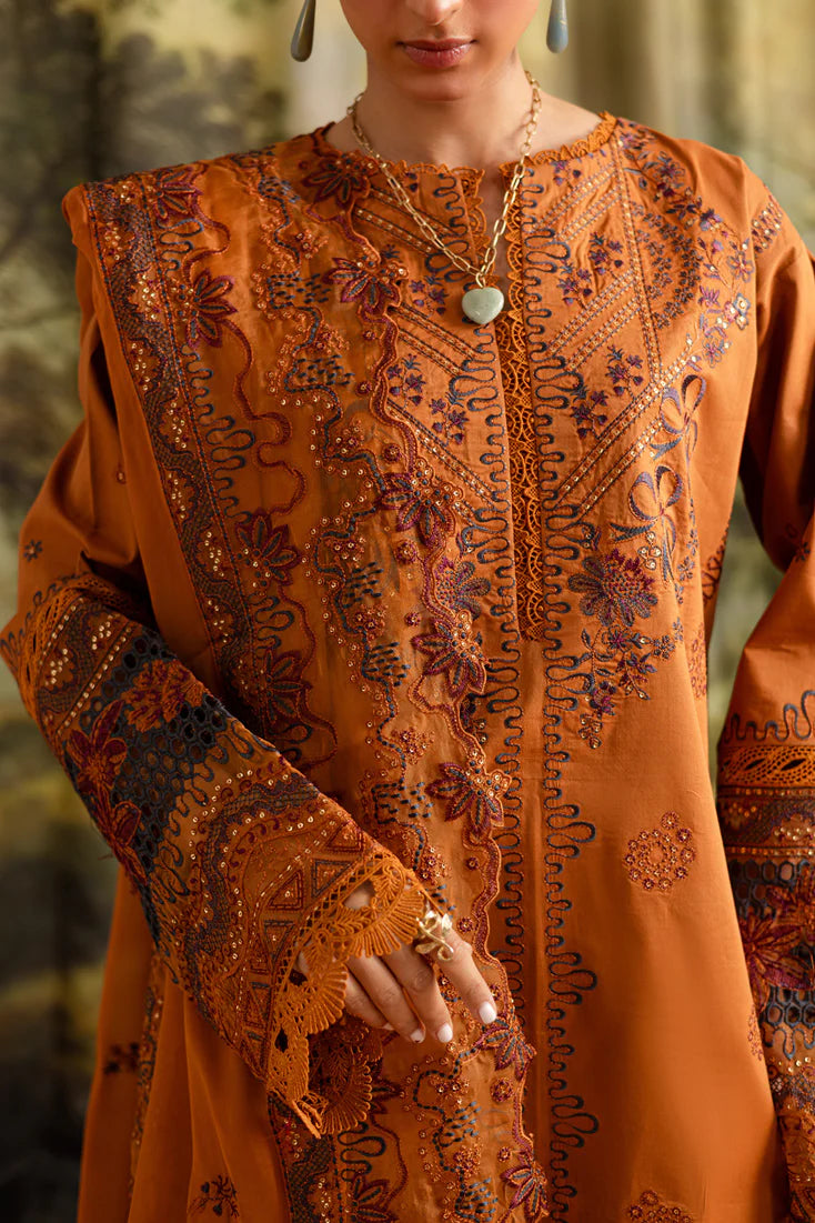 3 piece unstitched Embroidered Lawn by MARJJAN - SMC 208-A (Rust)