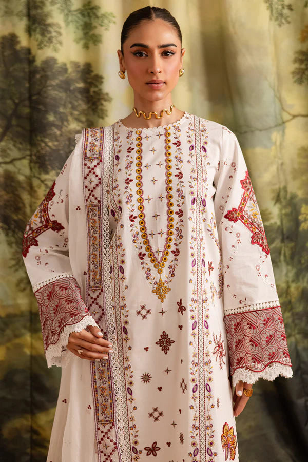 3 piece unstitched Embroidered Lawn by MARJJAN - SMC 207-A (White)