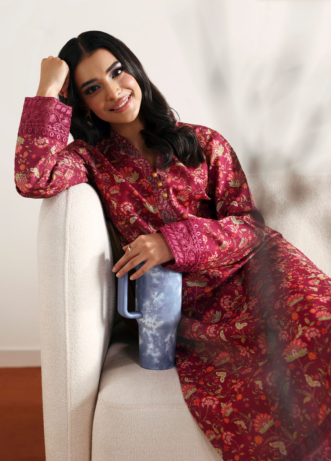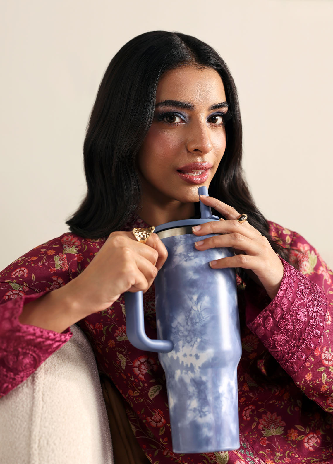 Cerise brings charm to everyday dressing with its all-over printed design, radiating effortless grace. The front and sleeves are accentuated with delicate embroidered organza borders, adding a touch of refinement to the look. Paired with a coordinating trouser featuring a subtle small-flower print and a complementing printed border, this ensemble is both feminine and fresh, making it a polished choice for daywear.