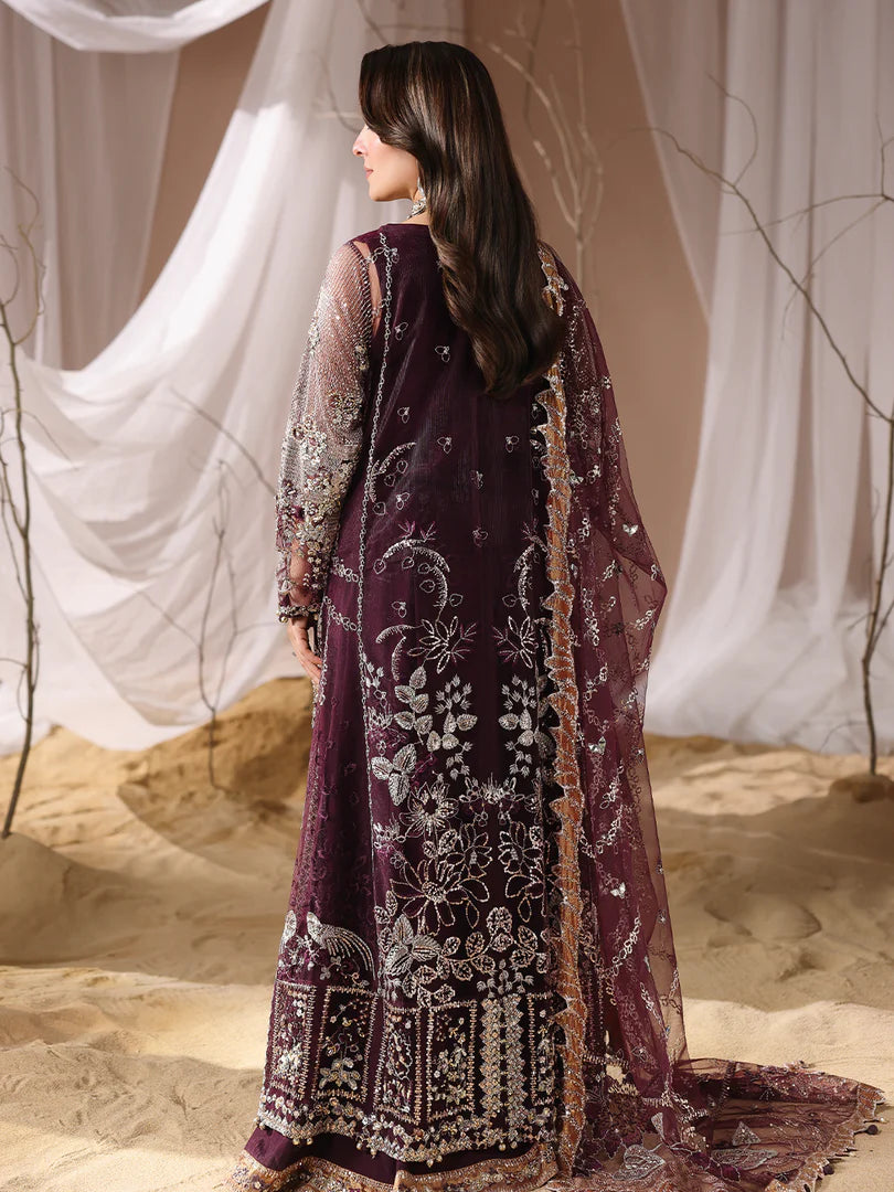 Stunning net gown, adorned with handcrafted adda work, naqshi dabka,pearls dazzling crystals, intricate chainwork,spangle embroidery, and traditional gotta patti. The gown is further embellished with delicate beads and playful paranda tassels,