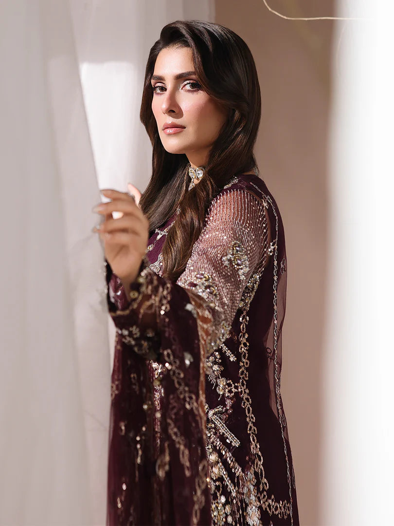 The net inner is luxuriously lined with pressed viscose fabrics, featuring intricate handcrafted adda work