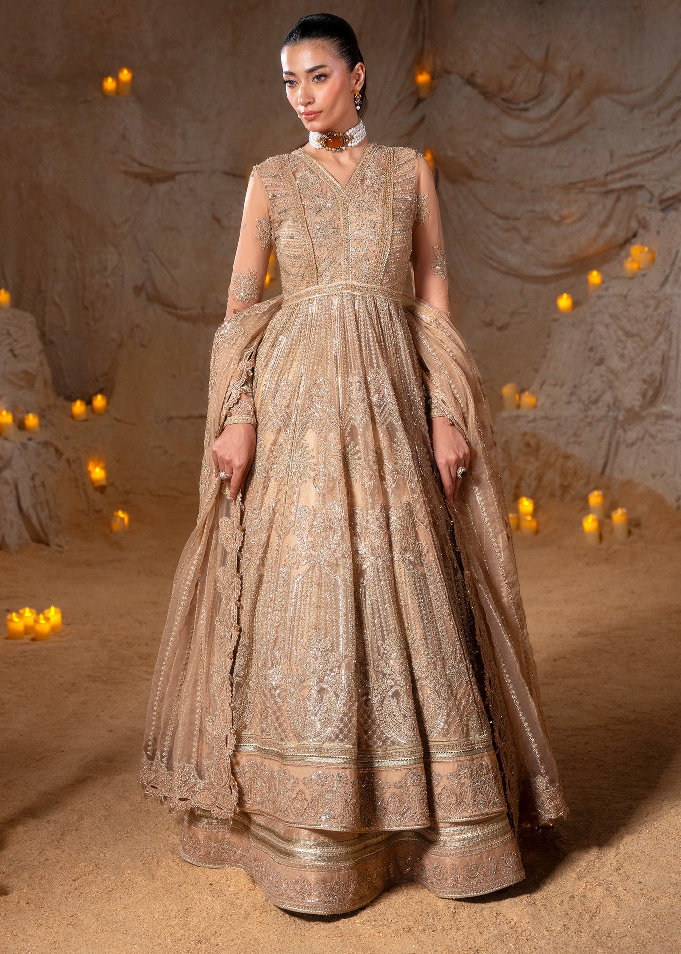 Bijou is a masterpiece of elegance and grandeur. The ensemble features an embroidered net shirt with delicate sleeves, paired with a lace-detailed net peshwas and a regal jamawar lehenga. An embroidered net dupatta completes the look, creating a timeless silhouette that is both graceful and sophisticated. Perfect for weddings and special occasions, Bijou embodies refined luxury