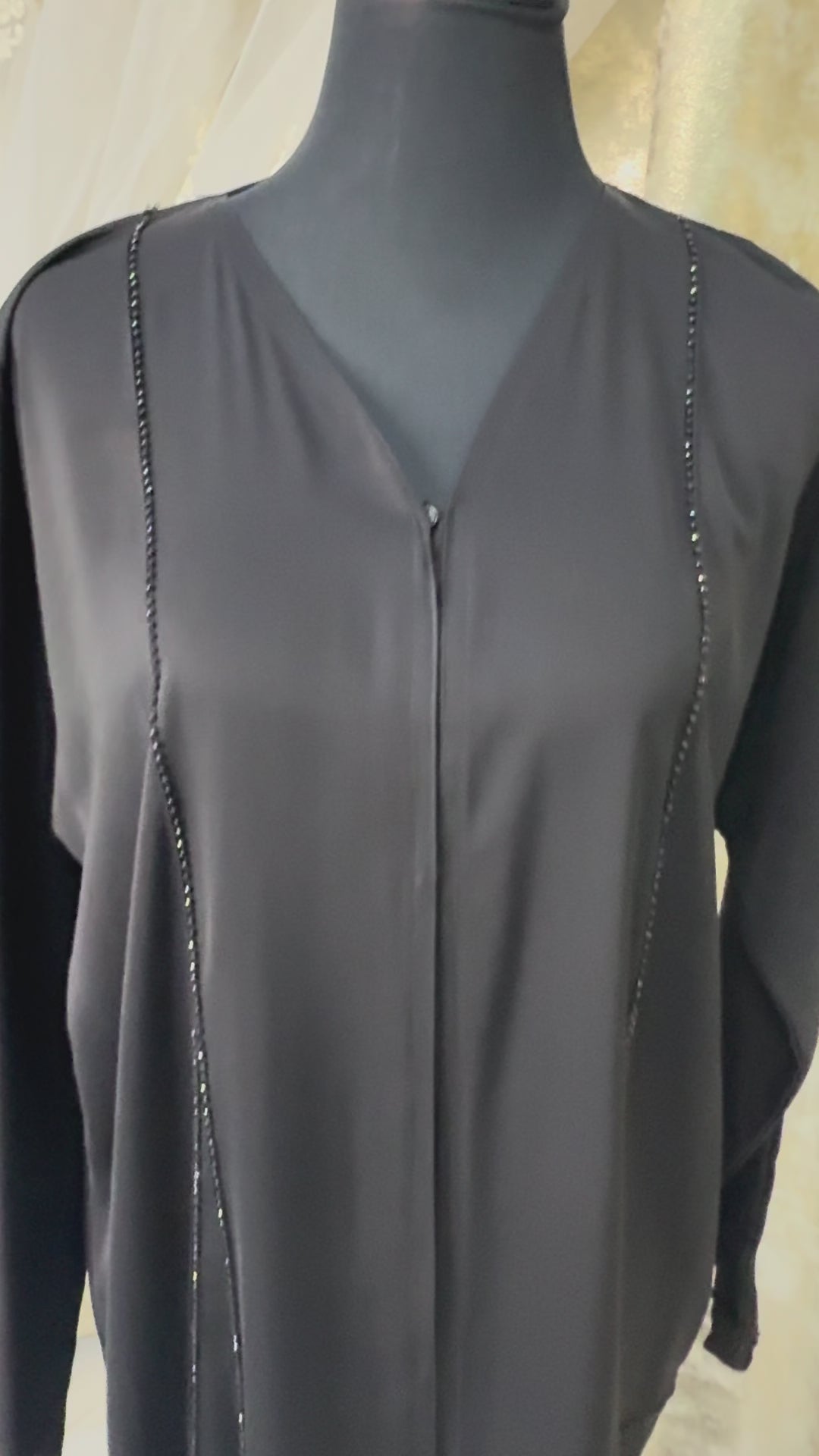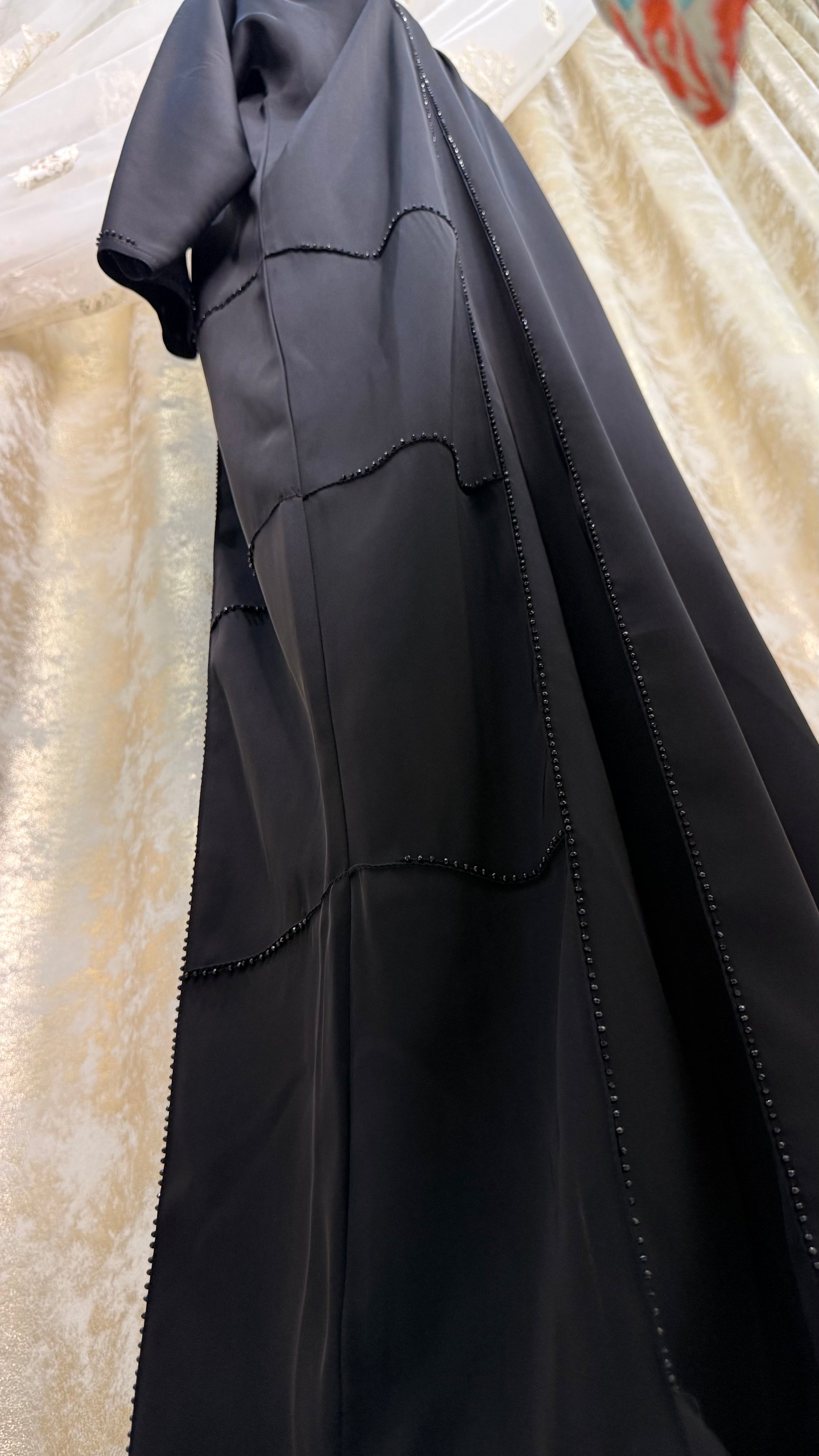 🖤 Linear Elegance Abaya – Minimal Beaded Perfection in Nada Fabric
